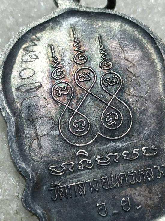 "เคาะเดียว"เหรียญนั่งพาน พระครูโสภิตวิหารคุณ (หลวงพ่อบุญชู) วัดกลาง อ.นครหลวง จ.พระนครศรีอยุธยา หลังมีจารยันต์ เนื้อเงิน น้ำหนัก 12 กรัม