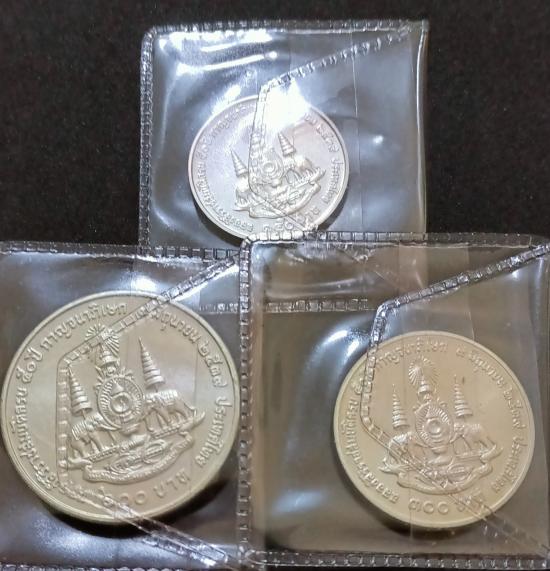 เหรียญเนื้อเงิน ร9ปีกาญจนาภิเษก ราคา150,300,600 บาท รวม3เหรียญ