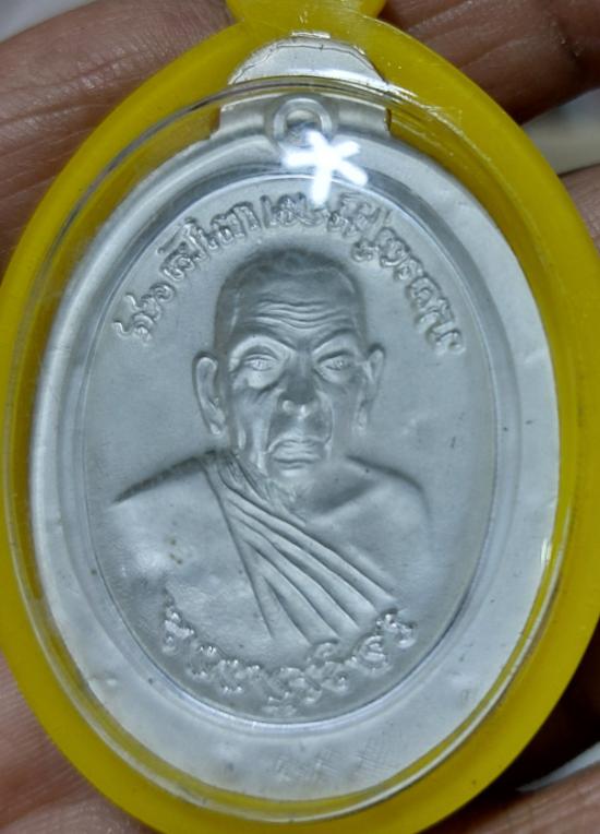 เหรียญเจริญพรเมตตามหานิยม หลวงปู่นิยม กมโล เนื้อเงินลงยาน้ำเงินไม่ตัดปีก หลังแบบ ๙รอบ กรรมการ no ๓ ควัดแจ้งนอก ปี 2555 |