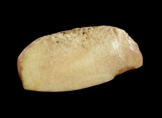 เขาสัตว์แกะเก่าเป็นรูปพระพนมมือ ศิลปะเก่าด้านหลังจารอักขระล้านนา