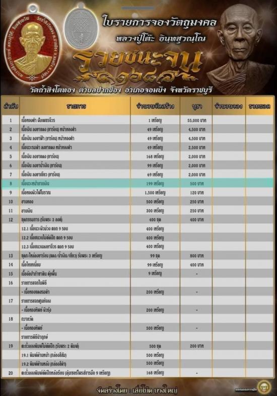 รายการนี้ เป็นรายการจองที่ 8 สร้างเพียง 199 องค์ สร้างน้อย หายากนะครับ