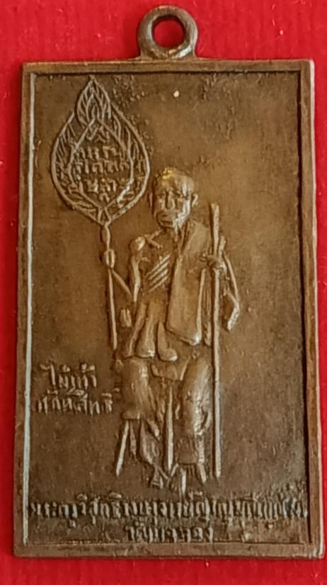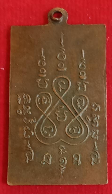 เหรียญหลวงพ่อแช่ม วัดฉลอง จ.ภูเก็ต พิมพ์สี่เหลี่ยมตัวหนังสือตรง เนื้อทองแดง ปี 2498