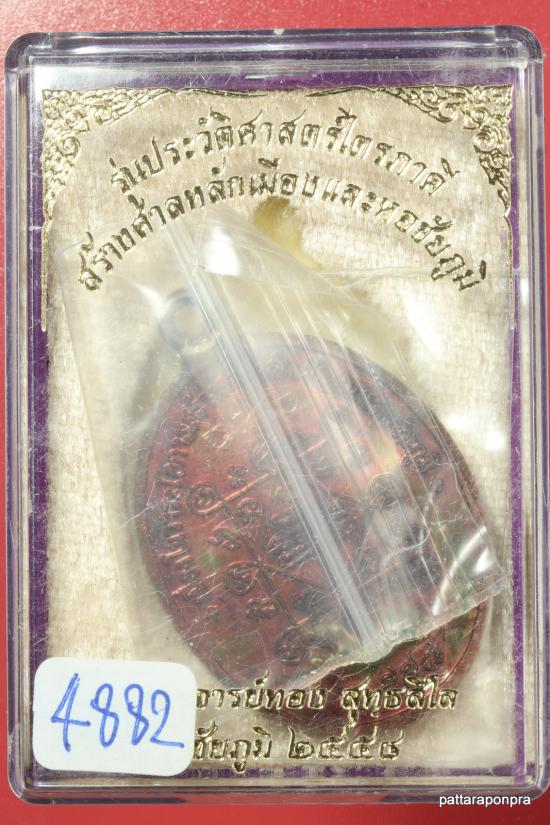 เหรียญหลวงพ่อทอง รุ่นประวัติศาสตร์ไตรภาคี ปี 2558 เนื้อทองแดง มีจารหลวงพ่อทอง หมายเลข 4882 |