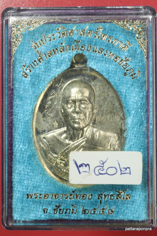 เหรียญหลวงพ่อทอง รุ่นประวัติศาสตร์ไตรภาคี ปี 2558 เนื้ออัลปาก้า มีจารหลวงพ่อทอง หมายเลข 2502