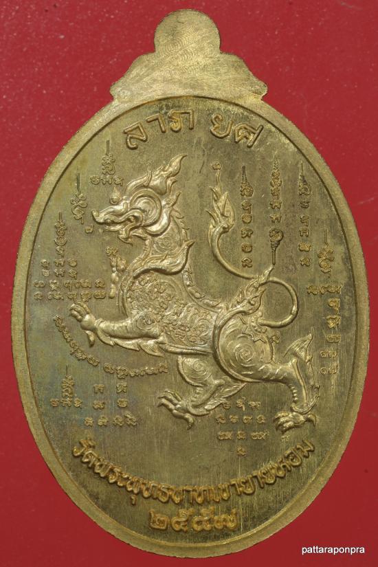 เหรียญหลวงพ่อทอง รุ่นประวัติศาสตร์ไตรภาคี ปี 2558 เนื้อกะไหล่ทอง มีจารหลวงพ่อทอง หมายเลข 1885 (ฝากล่องพระแตก โปรดพิจารณาก่อนร่วมประมูล)