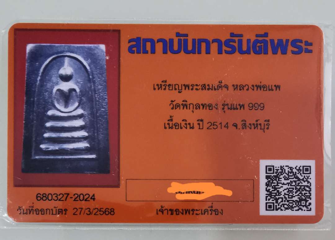 เหรียญพระสมเด็จ หลวงพ่อแพ ปี14 เนื้อเงิน สร้างน้อยมาก สวยๆพร้อมบัตรรับรอง