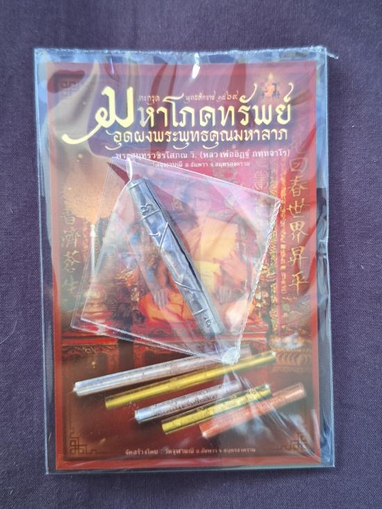 ตะกรุดมหาโภคทรัพย์ อุดผงพระพุทธคุณมหาลาภ ขนาด 1.5 นิ้ว เนื่อตะกั่วจำปี ปี 2545 หลวงพ่ออิฏฐ์ วัดจุฬามณี ซีลเดิม