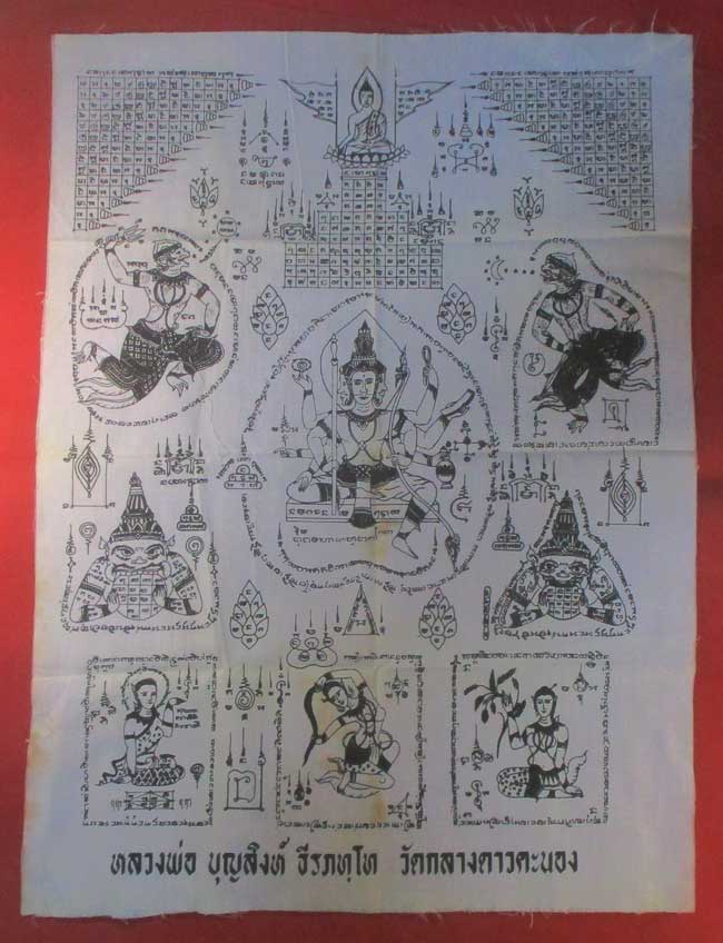 ผ้ายันต์ หลวงพ่อบุญสิงห์ ธีรภทฺโโ วัดกลางดาวคะนอง ลวดลายสวย ครับ (พระบ้าน ครับ)