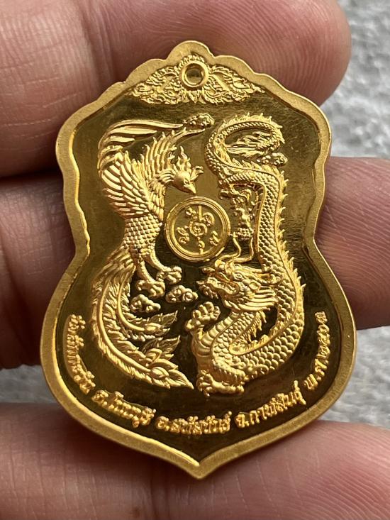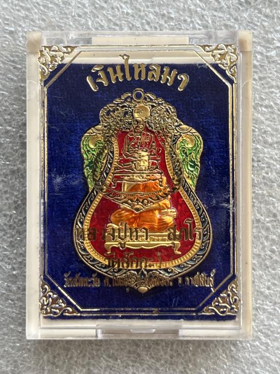 เหรียญเสมา เงินไหลมา หลวงปู่หา สุภโร วัดสักกะวัน จ. กาฬสินธุ์ ปี63 กะไหลทองลงยาแดง เลข69 พร้อมกล่อง