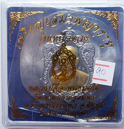 เหรียญเสมาพญาราหู รุ่น เหนือดวง 63 หลวงปู่จื่อ วัดเขาตาเงาะ จ.ชัยภูมิ ตะกั่วไม่ตัดปีก หน้าชุบทอง นำฤกษ์ รอยจารหน้า และหลัง ตอก ๙ รอบ พิเศษ เลข 90