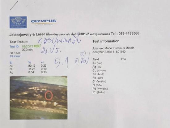 กรอบทองคำแท้ น้ำหนักประมาณ 5.1 กรัม เปอร์เซ็นสูง 80.13 %