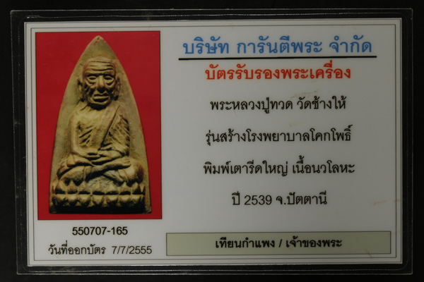 พระหลวงปู่ทวด วัดช้างให้ รุ่นสร้างโรงพยาบาลโคกโพธิ์ พิมพ์เตารีดใหญ่ เนื้อนวโลหะ ปี 2539 จ.ปัตตานี (2)