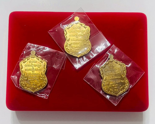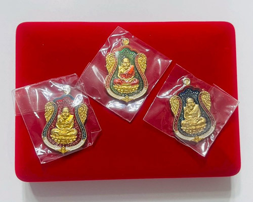 วัดใจ เหรียญหลวงปู่ทวด รุ่นปัญญาบารมี วัดเสมาเมือง จ.นครศรีธรรมราช ชุดทองทิพย์ลงยา 3 เหรียญ เลข2172 |