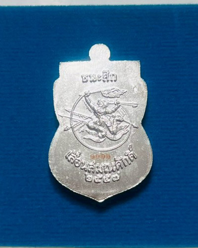 วัดใจ เหรียญหลวงปู่ทวดพิมพ์ใหญ่เลื่อนสมณศักดิ์ หลังหนุมานเชิญธง รุ่นชนะศึก เนื้อกะไหล่เงิน เลข1022 |