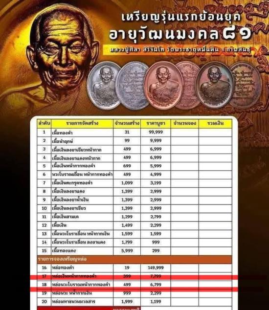 วัดใจ อ่านก่อนเคาะ เหรียญหล่อรูปไข่ หลวงปู่มหาศิลา สิริจันโท(หลวงปู่ศิลา) อายุวัฒนะมงคล81 "เหรียญหล่อเนื้อนวะโลหะหน้ากากทองคำแท้" ราคาจอง 6,799 เลขสวยเกือบตอง233