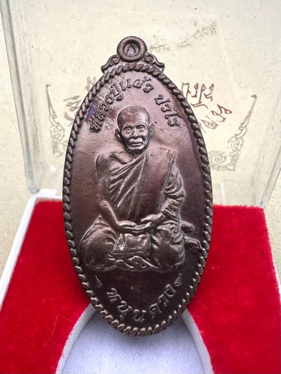 เหรียญใบขี้เหล็กหนุนดวง หลวงปู่แผ้ว ปวโร ออกวัดหนองพงนก มาพร้อมกล่องเดิม