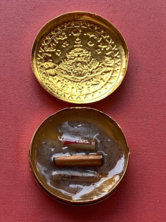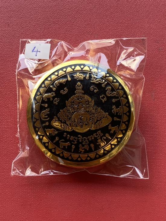 เคาะเดียวแดง สีผึ้งพระราหู รุ่น มงคลจักรวาล เนื้อ โลหะชุบทองลงยาสีดำขอบสีดำ ขนาด5ซม |