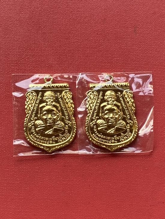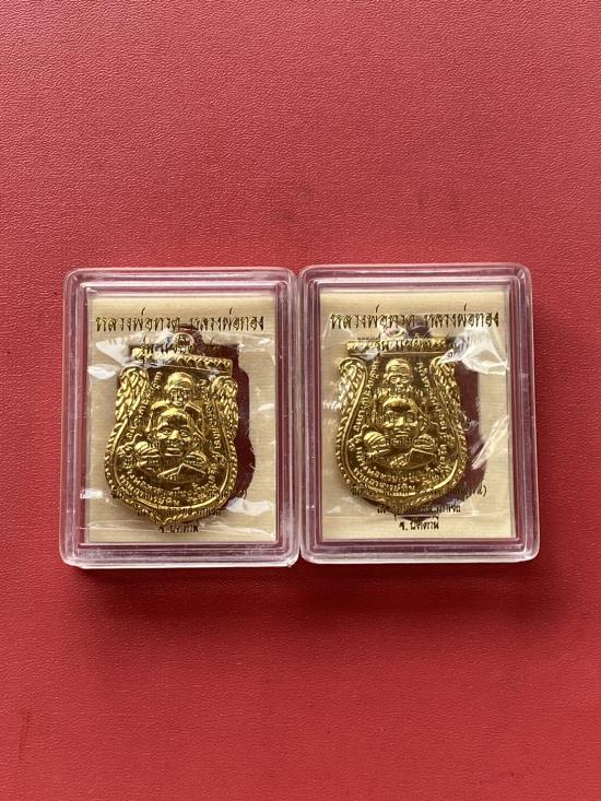 เคาะเดียวแดง หลวงปู่ทวด อาจารย์ทอง รุ่นแซยิด93 พิมพ์ใหญ่ 2องค์ เนื้ออัลปาก้าผิวเปียกทอง |