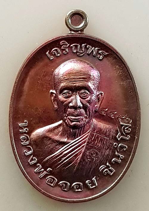 ::(วัดใจต่ำจอง((ราคาจอง 150 บาท))หลวงพ่อจอย ชินวังโส วัดโนนไทย(รุ่น-เจริญพรบนครึงองค์รุ่นแรก):: ::(**A14-เหรียญรูปไข่**เนื้อ-ทองแดงมันปู หมายเลข 4456 ราคาจอง 150 บาท::พร้อมกล่อง ****((สภาพสวย))*****