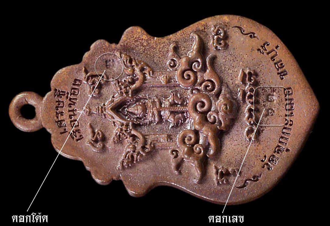- เนื้อทองแดง ลงยาพื้นแดง กนกขาว พิมพ์นี้สร้างน้อยแค่ 100 เหรียญ ตอกโค้ด ตอกเลข-๖๓ (เลขสวย2หลัก)