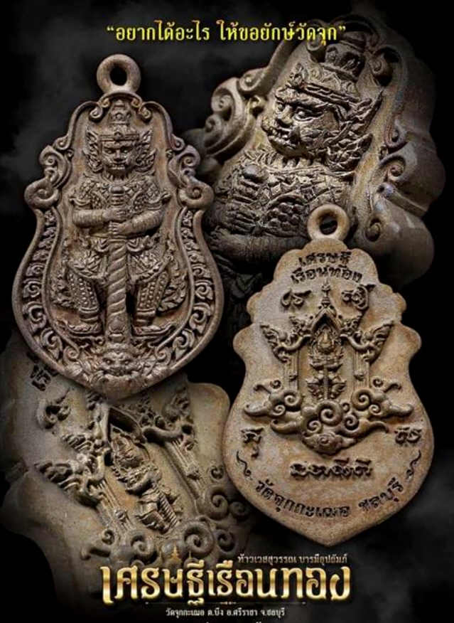 เหรียญหล่อ ท้าวเวสสุวรรณ บารมีอุปถัมภ์ รุ่นเศรษฐีเรือนทอง หลวงพ่อช้าง วัดจุกเฌอ ปี2563 เนื้อทองแดงลงยาพื้นแดงกนกขาว หมายเลขสวย-๖๓ กล่องเดิม ครูบากฤษดา ร่วมเสก