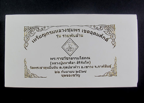 เหรียญกรมหลวงชุมพร " รวยพันล้าน" ศิษย์ทร. สร้างถวาย หลวงปู่มหาศิลา (หลวงปู่ศิลา) วัดพระธาตุหมื่นหิน กาฬสินธุ์ ชุดของขวัญ " ชุดของขวัญ "