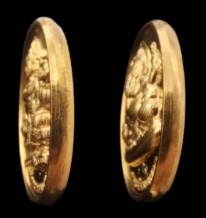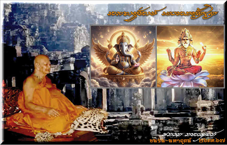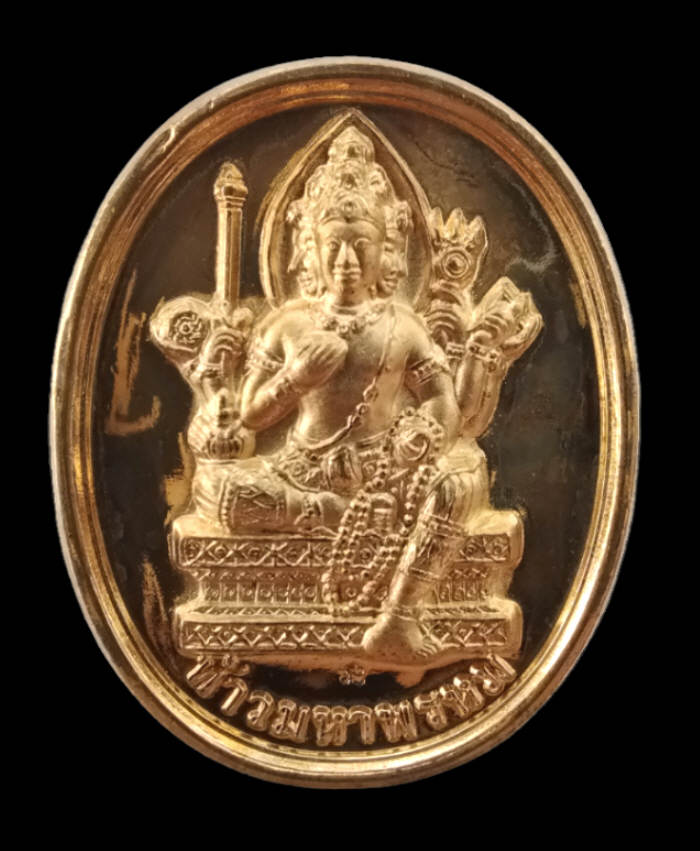 เหรียญหล่อสองมหาเทพ ท้าวมหาพรหม พระพิฆเนศวร หลวงปู่หงษ์ พรหมปัญโญ วัดเพชรบุรี สุรินทร์ รุ่นโชคดีมีสุข ตอก2โค้ด เนื้อทองเหลืองกะไหล่ทอง ปี2547 กล่องเดิม