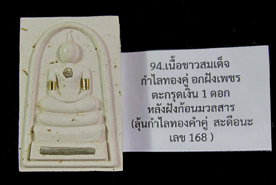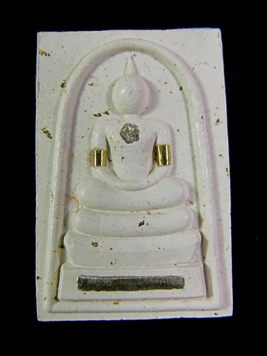 -พระสมเด็จชินบัญชร รวย รวย รวย หลวงปู่มหาศิลา สิริจันโท เมตตาเชียนยันต์ ตั้งชื่ออธิฐานจิต เนื้อขาวสมเด็จกกำไลทองคู่ อกฟังเพชร ตะกรุดเงิน 1 ดอก หลังฝังก้อนมวลสาร เลข 58