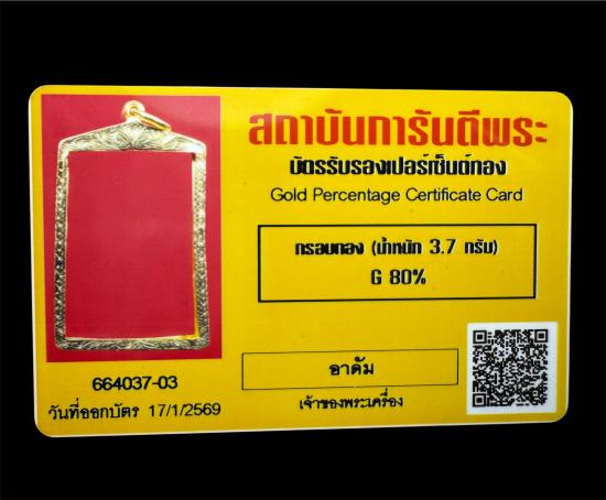 กรอบทองคำแท้ 80 % *** น้ำหนัก 3.7 กรัม ผม*** ใส่พระสมเด็จ หรือ พระขนาดที่ใกล้เคียง ส่งพร้อมบัตร (( เคาะแรกแดง ครับ ))