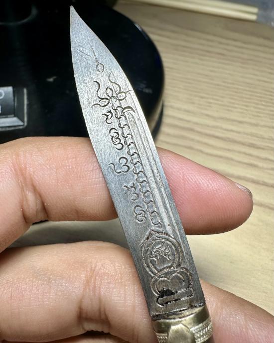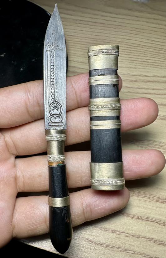 มีดหมอ หลวงพ่อ ประเทือง วัดหนองย่างทอย ด้ามและปลอกมีดไม้งิ้วดำ ตัวเหน็บหลุดเอากระดาษรองไว้ สวยเดิม |