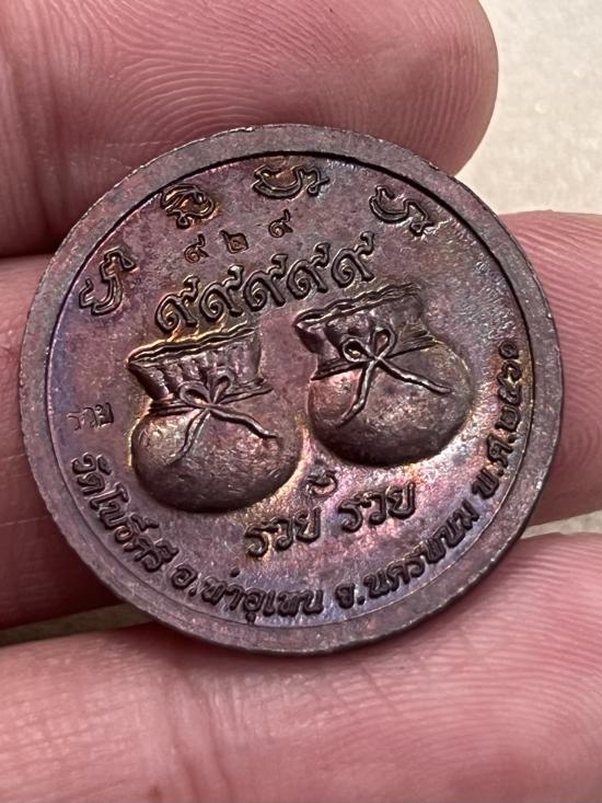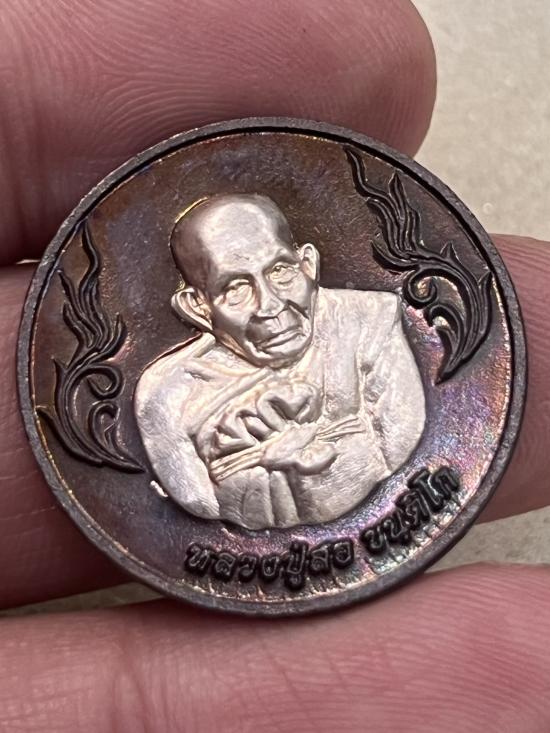 เหรียญหลวงปู่สอ วัดโพธิ์ศรี นครพนม ปี2561 หน้ากากเงิน รวย รวย 99999 สวยเดิม