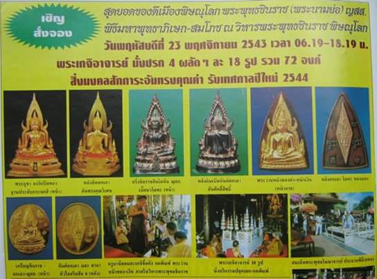 พิธีมหาพุทธาภิเศกครั้งยิ่งใหญ่ครั้งประวัติศาสตร์ของพิษณุโลกครับ ยิ่งใหญ่มากนับจากพิธีปี 15 ครั้งนั้น หลวงพ่อกวย และเกจิอาจารย์เลื่องชื่อมากมายร่วมพิธี แต่ครั้งปี 2543 นี้ หลวงปู่หมุนมาและเกจิอาจารย์เลื่องชื่อมากมายร่วมพิธี ซึ่งใช้ได้ไม่แพ้กันแน่นอน ^^