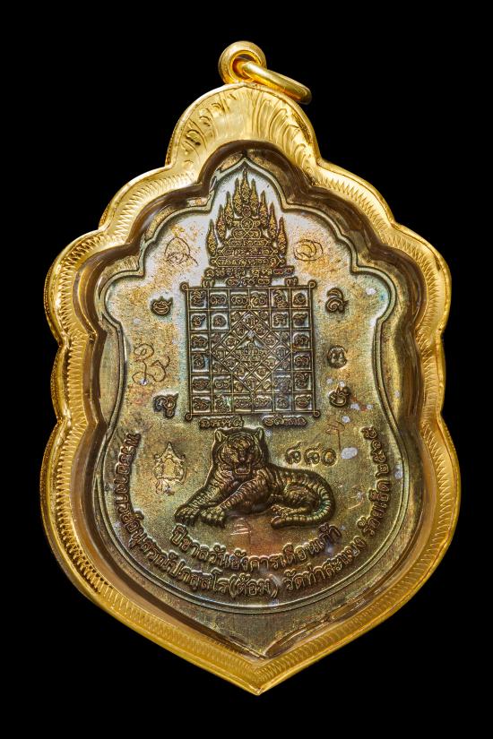 (เคาะแดง39000) +บัตรสมาคม เหรียญเสือนอนกิน เนื้อนวโลหะ จารมือหน้าหลัง