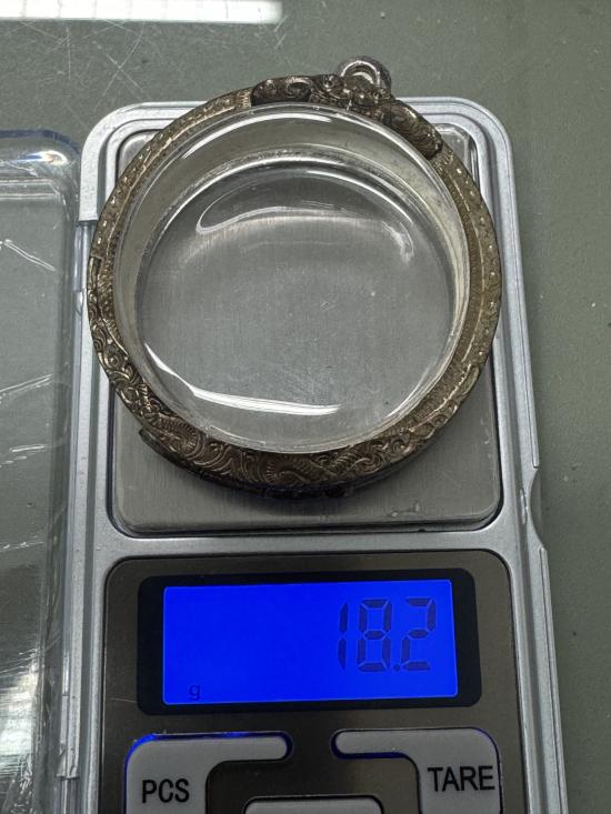 ตลับเงินทรงกลม ขนาด 5 x 5 เซ็นติเมตร น้ำหนักเงินรวมพลาสติก 18.2 กรัม