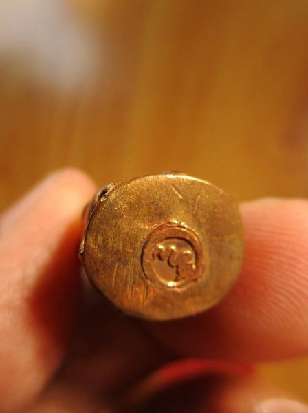 กริ่งตั๊กแตนพระอูปคุปต์มหาลาภนั่งบัวเนื้อทองแดงนอกขัดเงา หลวงปู่คำพันธ์ วัดธาตุมหาชัย จ.นครพนม ปี 2545 ผิวไฟสวยมากๆ