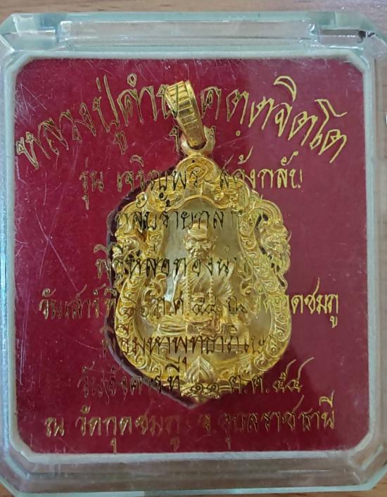 วัดใจ เหรียญเจริญพร สดุ้งกลับ หลวงปู่คำบุ (เนื้อทองระฆัง) วัดกุดชมภู จ.อุบลราชธานี |