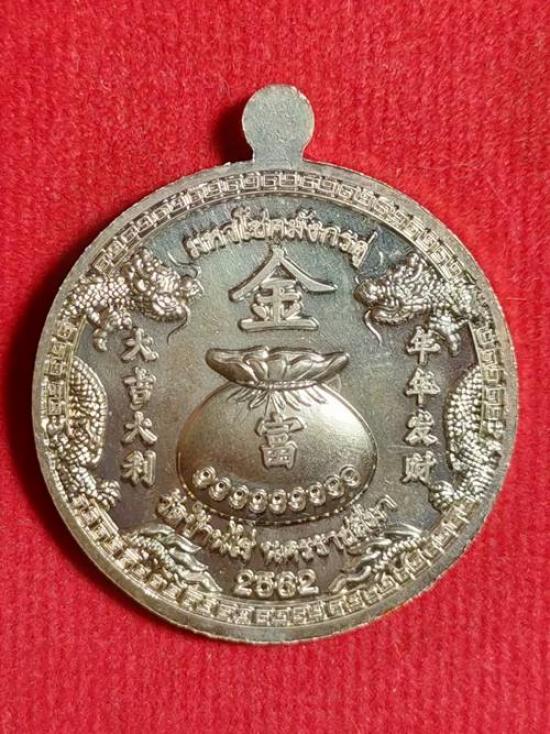 รุ่นแรกเหรียญขวัญถุง มหาโชคมังกรคู่ หลวงพ่อทอง สุทธสีโล ออกวัดบ้านไร่ ปี 62 เนื้อ เงินลงยาสีแดง หมายเลข 49 สภาพสวย เคาะเดียวแดง |