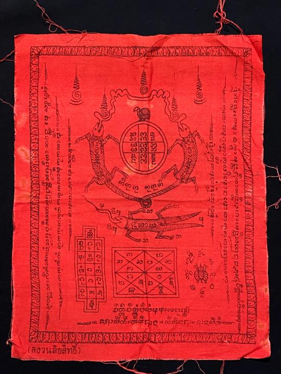 ผ้ายันต์จิ้งจกล้อมโลก (จั๊กกิ้มสองหาง) หลวงปู่ครูบาอิน อินโท วัดฟ้าหลั่ง ดอยหล่อ จ.เชียงใหม่