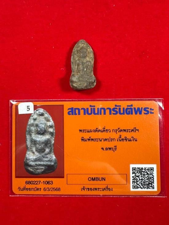 พระแผงตัดเดี่ยว กรุวัดพระศรีมหาธาตุ พิมพ์นาคปรก เนื้อชินเงิน จังหวัดลพบุรี มีบัตรการันตี