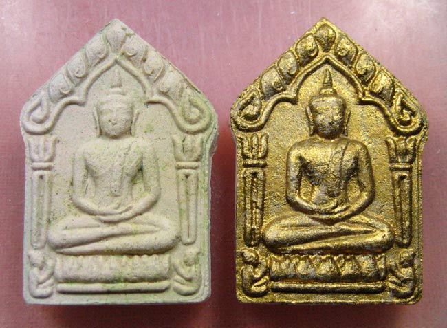 พระขุนแผนผงพรายกุมาร ที่ระลึกพิธีฉลองกุฎิ เนื้อชมพู ปี ๒๕๕๓ ไม่ทาทอง หมายเลข ๑๒๘๒๐ และทาทอง หมายเลข ๕๐๙๘ พร้อมกล่องเดิมๆ