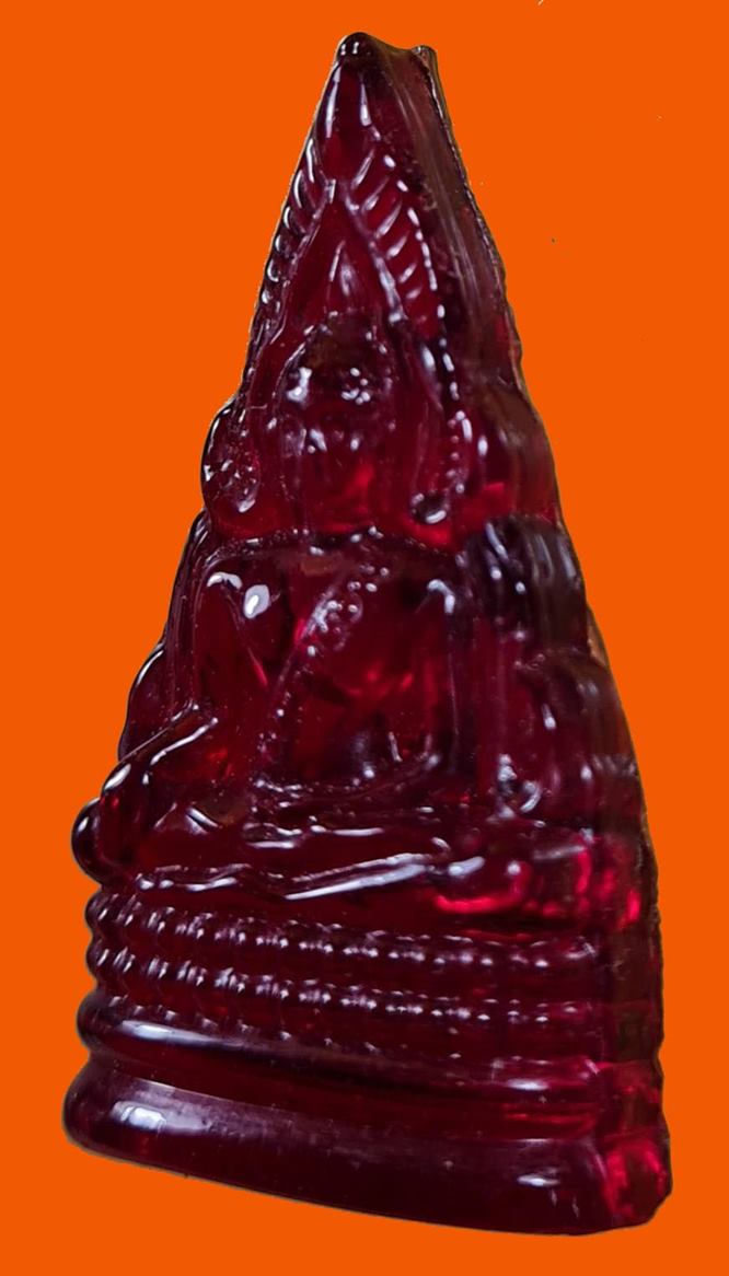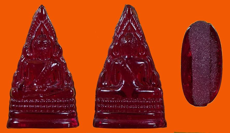 พระพุทธชินราช หลวงพรหมโยธี วัดพระศรีรัตนมหาธาตุ พิษณุโลก เนื้อแก้ว (สีแดง) ปี2493 + พิธีจักรพรรดิ์มหาพุทธาภิเษก ปี 2515 เจ้าคุณศรีสนธิ์ปลุกเสก สวยครับ