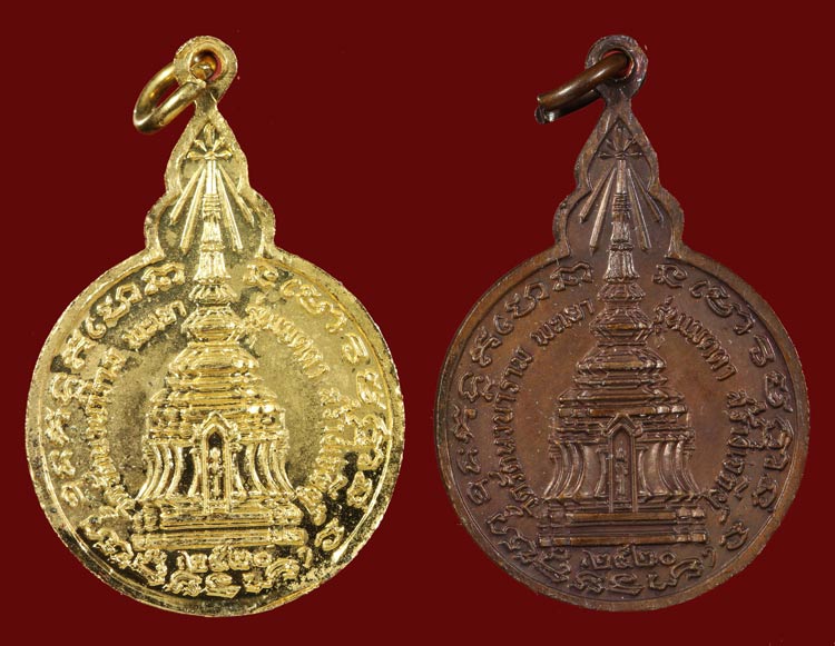 เหรียญเมตตา สร้างเจดีย์ จ.พะเยา เนื้อกะหลั่ยทอง และทองแดง ปี2520
