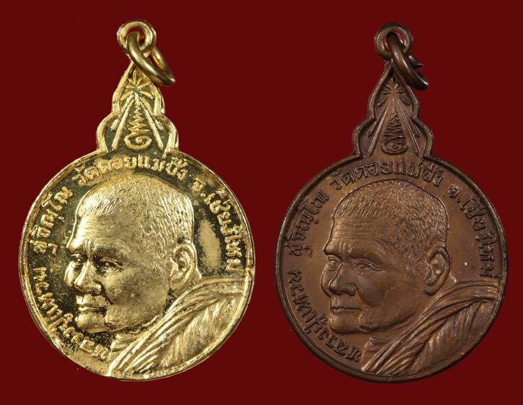 เหรียญเมตตา สร้างเจดีย์ จ.พะเยา เนื้อกะหลั่ยทอง และทองแดง หลวงปู่แหวน ปี2520 สวยๆ |