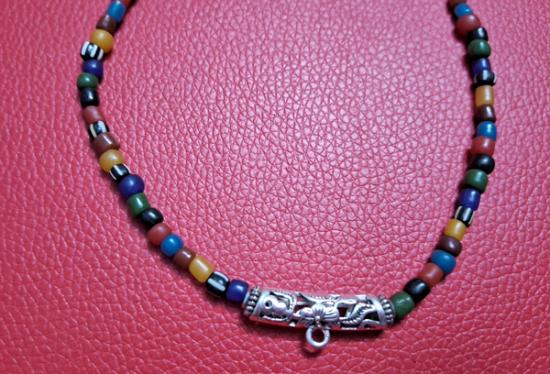สร้อยคอลูกปัดทราวดี ลูกปัดโบราณสวยๆ ความยาว 24 นิ้ว สวมหัวได้หรือหมุนเกลียวทองเหลืองถอดออกก็ได้ สามารถห้อยพระได้ 1 องค์ (กท.21) |