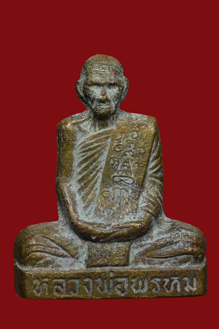 พระรูปเหมือนปั๊ม หลวงพ่อพรหม วัดช่องแค รุ่นเข่ากว้างหลังเข็ม เนื้อทองระฆัง สร้างในปี พ.ศ. 2516 จัดสร้างจำนวน 2,000 องค์