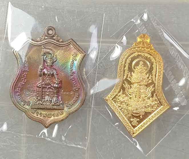 เหรียญพญายม หลวงปู่เชิด วัดเที่ยงพิมลมุข ฉะเชิงเทรา +เหรียญท้าวเวสสุวรรณรุ่นรวยเหลือล้น หลวงปู่บุดดา วัดป่าใต้พัฒนาราม สระแก้ว+สายรัดข้อมือท้าวเวสสุรรณ 2 เส้น |