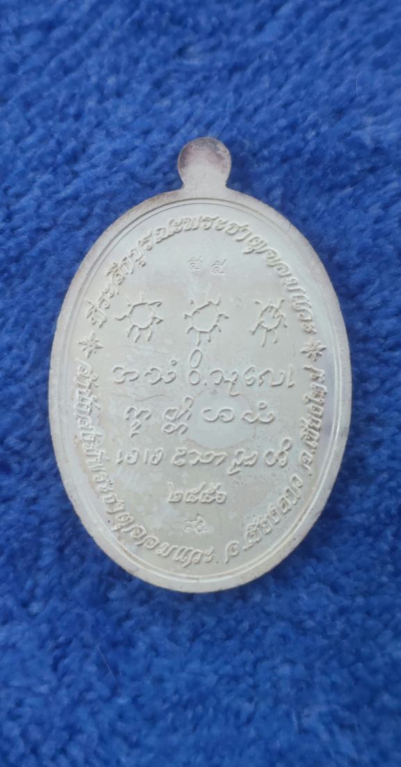 เหรียญอายุยืน ครูบาออ สำนักสงฆ์พระธาตุจอมแวะ เนื้อเงินลงยา เลข 55 เคาะเดียว