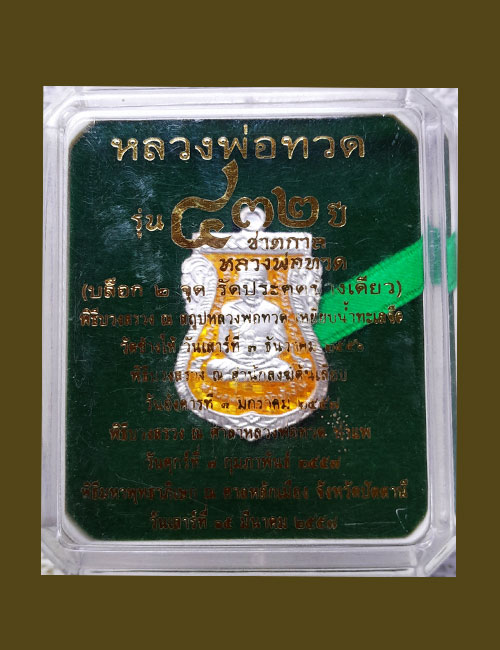 หลวงปู่ทวด รุ่น 432 ปี ชาตกาล เนื้อเงินลงยาสีเหลือง หมายเลข ๑๕๐ ( องค์จริงสวยมาก ) มาพร้อมกล่องเดิมครับ |