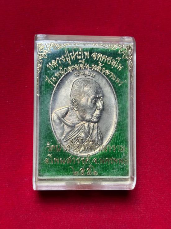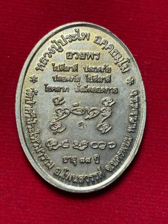 เหรียญอายุยืนหลังอวยพรหลวงปู่ประไพ อคุคธมุโม วัดป่าศรีประไพวนาราม จ.นครพนม โค๊ต จ. เนื้ออัลปาก้า ปี 56 |