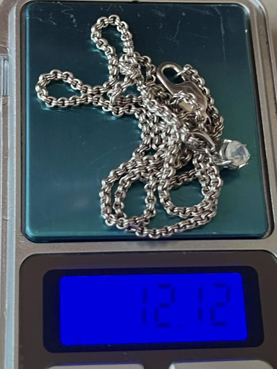 สร้อยเงินห่วงคู่ 20 นิ้ว พร้อมจี้มูนสโตน รวมน้ำหนัก 12.12 กรัม